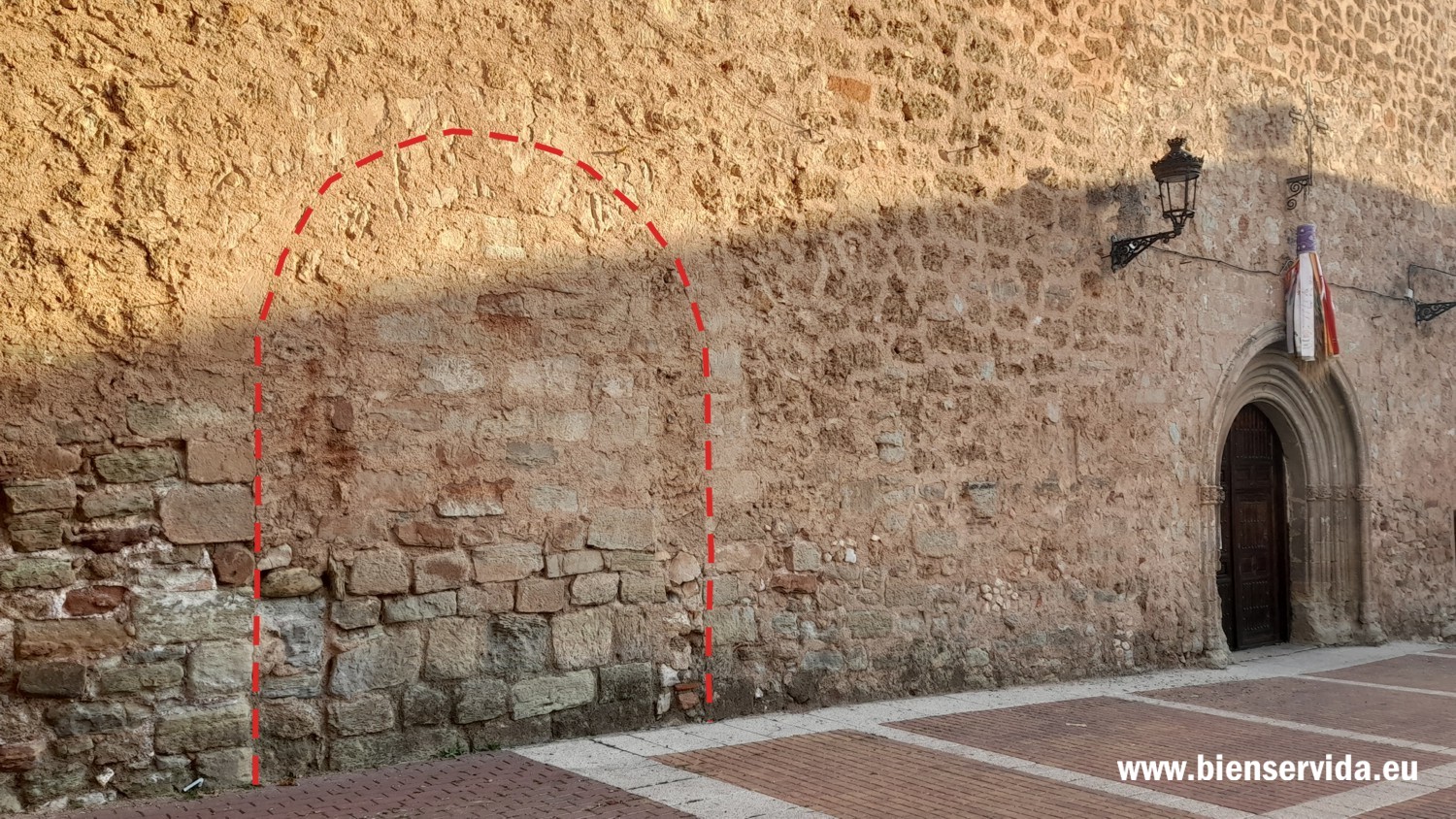 Arco cegado de entrada a la capilla de la Virgen del Rosario, demolida en 1984
