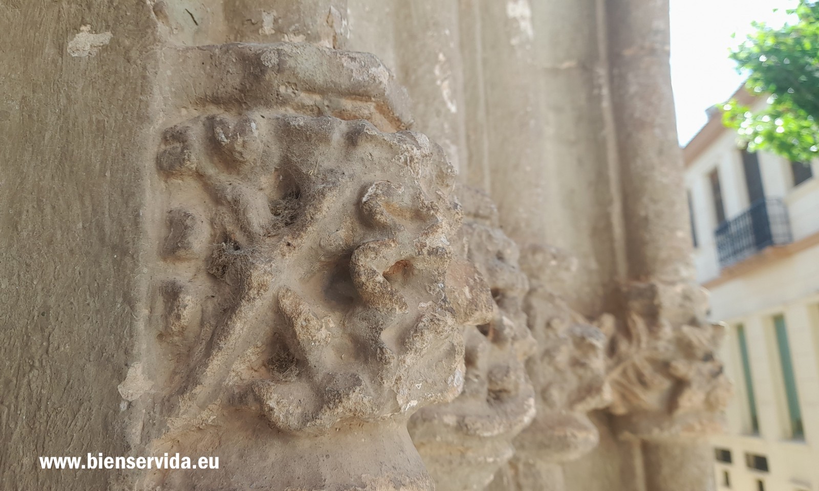 Pese a su deterioro por el paso del tiempo, ya más de cinco siglos desde su construcción, todavía es posible identificar, aunque a veces de forma dudosa, muchos de los elementos esculpidos en los capiteles, todos ellos muy característicos del arte gótico final.