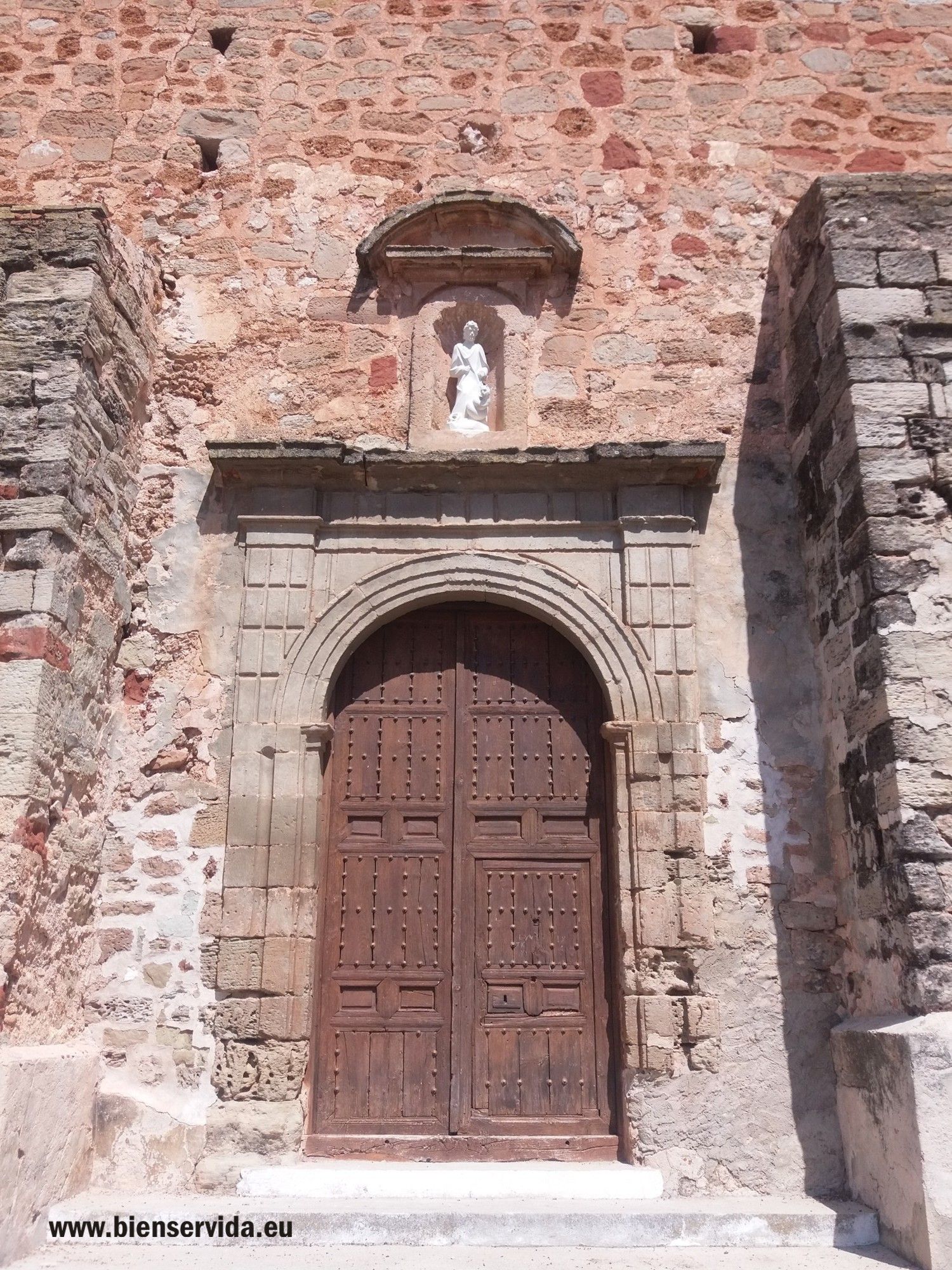 En la imagen que sigue, tomada del Catálogo de BIC de la JCCM, que aunque no está fechada será aproximadamente de 1983, se muestra el estado de la fachada norte de la Iglesia de San Bartolomé de Bienservida, antes de la controvertida reforma de 1984.