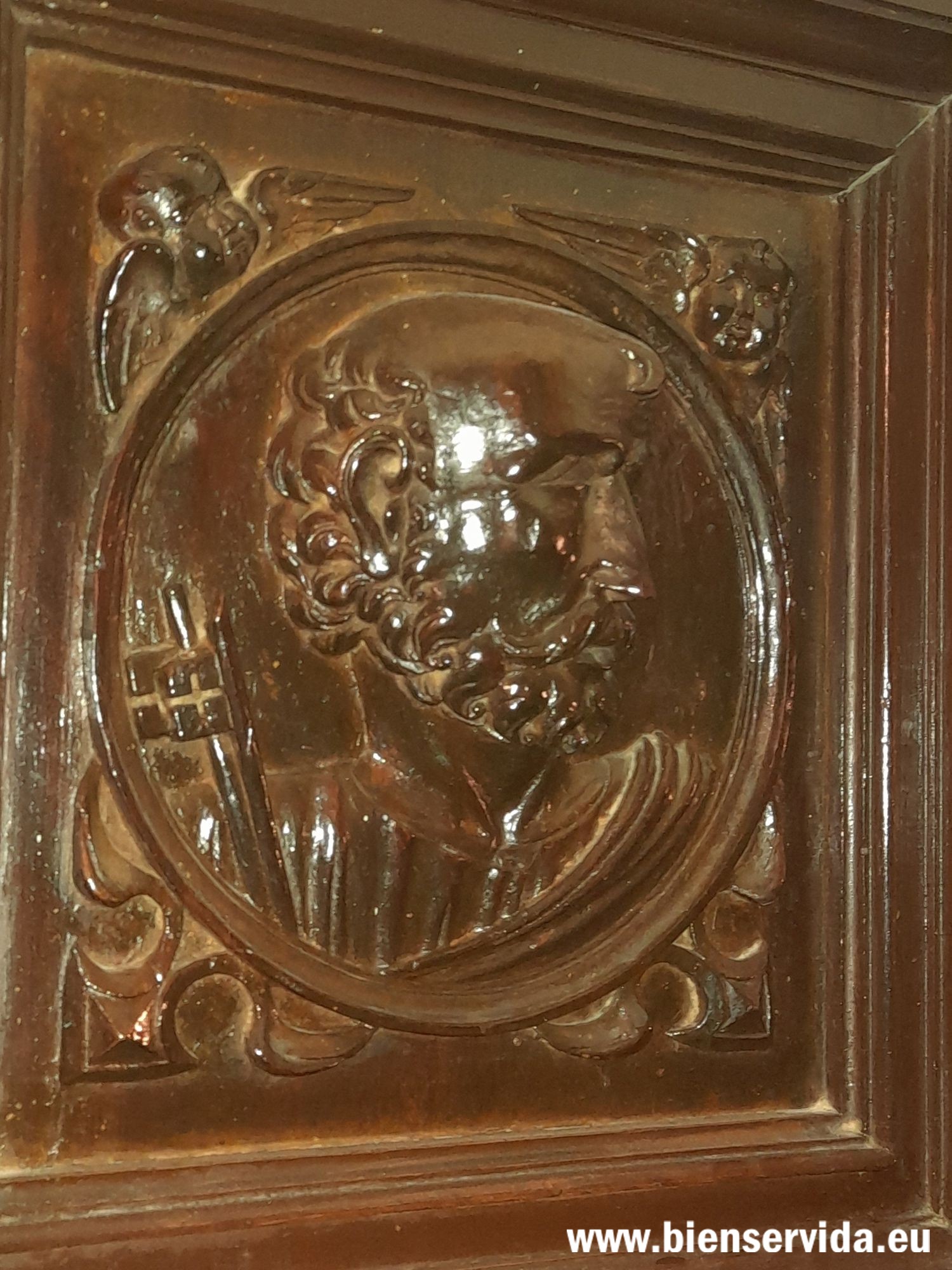 Relieve con el busto de San Pedro, con su iconografía habitual,