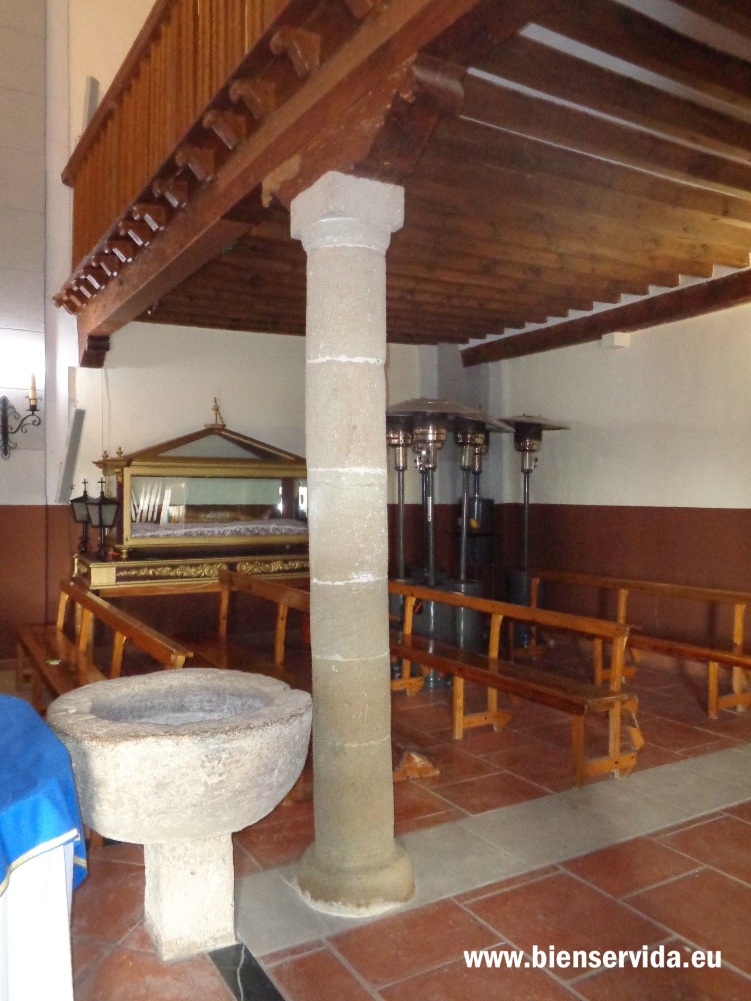 Delante de la columna central de piedra, se encuentra la que seguramente sea la primitiva pila bautismal de la iglesia.