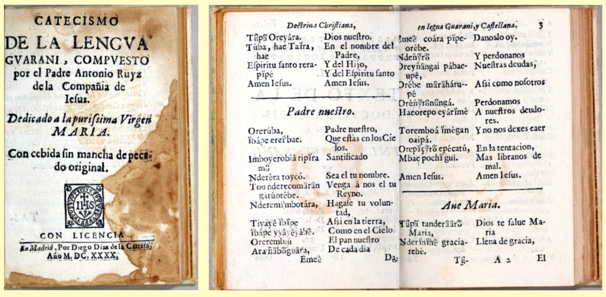 Una vez instalados en la reducción, lo primero que hacían los religiosos era aprender el guaraní hasta que se les declaraba aptos para enseñar a los niños, lo que se conseguía en un mes y tras dos o tres meses más se les autorizaba a confesar y predicar en la lengua indígena. Para ello disponían de libros escritos por sacerdotes jesuitas que les ayudaban a aprender las lenguas nativas, como el manual de guaraní o el catecismo bilingüe que ilustran este texto, ambos escritos por el Padre Antonio Ruiz e impresos en Madrid. El que muchos de estos libros se imprimieran en Madrid motivaba que las expediciones a Buenos Aires cargaran en las bodegas de las naos muchos libros, como fue el caso de la del Padre Altamirano.