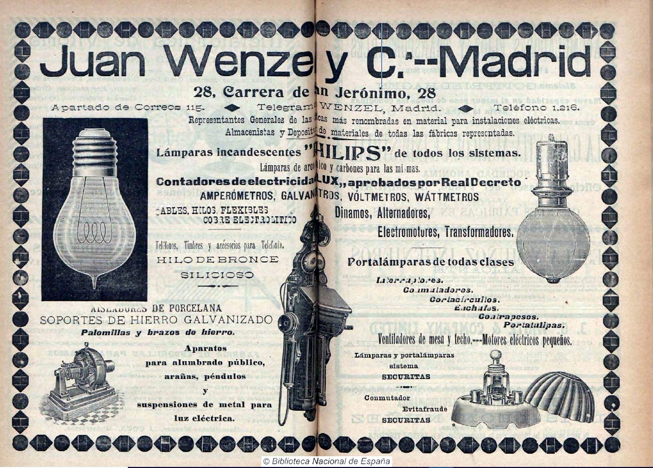 Anuncio de material eléctrico, publicado en la revista La Energía eléctrica. (10-1-1905). BNE.