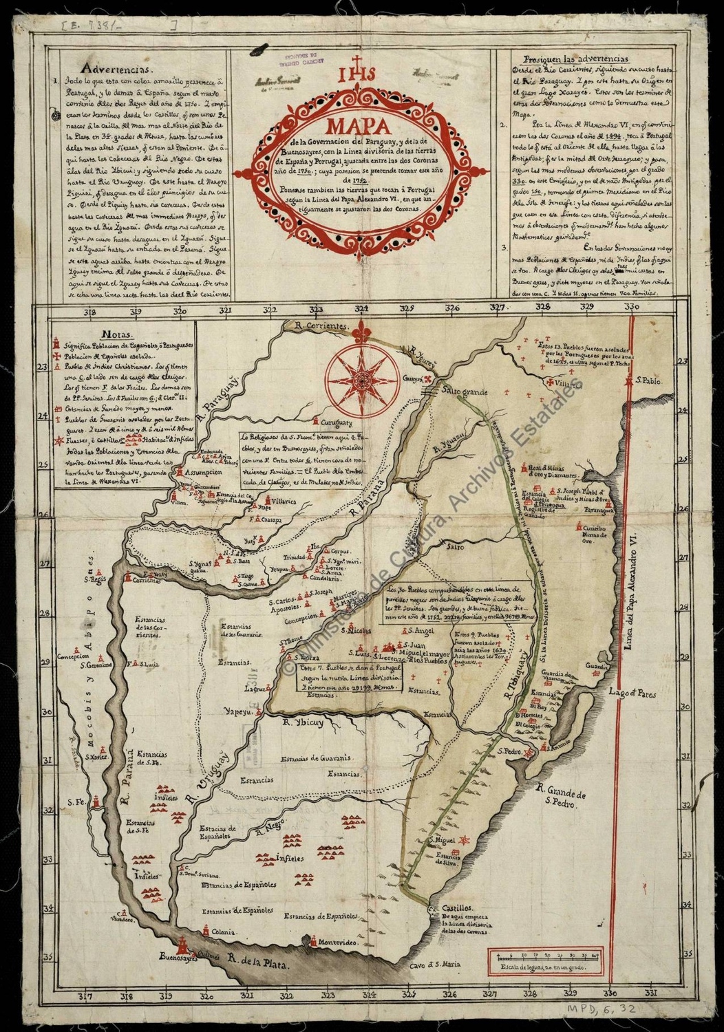 Mapa de las gobernaciones de Paraguay y Buenos Aires. José Cardiel, 1752