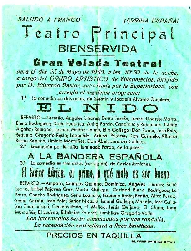 Teatro en Bienservida en 1940